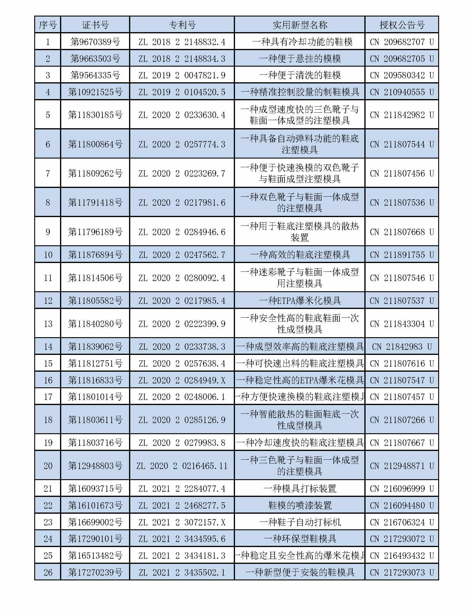 公司有26個實用新型專利證書...